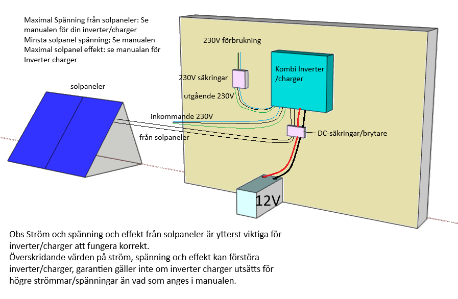 230V system har fördelar mot 12 V system. 230V gör det möjligt att använda hemelektronik och hushållsmaskiner gjorda för 230 VAC. 230 volts utrustning är oftast billigare än 12/ 24 V utrustning och är lätta att hitta i varuhus nära dig.