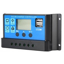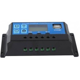 En 10A regulator med många funktionalitetet och visnings display och USB-laddare. Bra för små och medelstora solcellsanläggningar. 10A regulatorn räcker för solpaneler av upp till 165W. Passar båda 12V och 24V (24V klarar 330W paneleffekt). Trots enkelheten har den flera funktioner, inställbar för olika batterityper, överladdnings- och djupurladdningsskydd. Har två USB-uttag för laddning av mobilen och andra USB enheter.