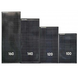 Shine serie solcellspaneler med högeffektiva solceller för maximal effekt på minimal storlek. Panelen är helt svart. Shine serien finns i 4 storlekar från 100W till 160W. Alla har samma bredd. Kraftig anodiserad aluminium ram och behandlat svart.